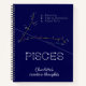 Zodiac Constellation Pisces or fishes. The colour of the stars is roughly real. Star and space objects' names. According to ancient Greek and Babylonian legends, Pisces - Fish - represents two fishes joined by a rope. The knot of the rope is Alpha Piscium - Alrescha (“the cord” in Arabic). In Roman mythology, the constellation represents Venus and Cupid, who transformed themselves into fish in order to escape the monster Typhon. Pisces is the Zodiac constellation. The Sun transits the area along the Ecliptic line between February 18 and March 20. Unique, one-of-a-kind, beautiful, and funny spiral notebook for anyone to write down valuable insights. Customisable. You can change images, and you can change or delete template texts on the front and on the back. Do not forget to use the "Personalise", or "Edit Design" (as the case may be) button. It will transfer you to the "Designer Tool" area where you can use the "FILL/FIT" option to ADJUST THE DESIGN TO THE SIZE AND SHAPE of the product, to rotate it, to change the position, and colour of the background, etc. Just be creative, enjoy, and be happy.