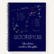 Zodiac Constellation Scorpius or scorpion. The colour of the stars is roughly real. Star and space objects' names. According to Greek mythology, Orion boasted to goddess Artemis that he would kill every animal on the Earth. Artemis decided to protect animals. She and her mother Leto sent a scorpion to deal with Orion. The scorpion killed Orion in a battle. Zeus, who watched the lively performance, raised the scorpion to heaven and did the same for Orion as a reminder for mortals to curb their pride. Scorpius is a zodiac constellation. The Sun transits this area along the Ecliptic line between October 23 and November 21. Unique, one-of-a-kind, beautiful, and funny spiral notebook for anyone to write down valuable insights. Customisable. You can change images, and you can change or delete template texts on the front and on the back. Do not forget to use the "Personalise", or "Edit Design" (as the case may be) button. It will transfer you to the "Designer Tool" area where you can use the "FILL/FIT" option to ADJUST THE DESIGN TO THE SIZE AND SHAPE of the product, to rotate it, to change the position, and colour of the background, etc. Just be creative, enjoy, and be happy.