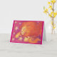 Leo the lion catches falling stars. Fire sign, July 24 - August 23 (there may be a variation in the dates). Greetings card with a gold, orange, pink and purple customisable design for you to personalise with your own text, images and ideas. An original coloured pencil and metallic ink drawing by Jess Perry.