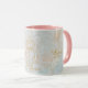 Elegant astrology theme zodiac Leo the Lion star sign Coffee Mug on subtle ice blue mottled cosmic background. Popular font typography monogram name & text details can be easily personalised or deleted. A touch of celestial faux gold glitter adds a little glamour & mystique. Available in all 12 signs to create a matching set - with option to customise interior & handle colour via the Zazzle edit menu.