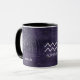 Embrace the mystique of astrology with our zodiac sign - Aquarius - coffee mug with details in white colour, featuring the whimsical allure of the Aquarius Sign against a dark purple watercolor background with stars. Customise it with your name and delve into the mystical realm of star signs and horoscopes. This trendy mug, adorned with elegant details, makes a perfect gift for astrology enthusiasts and those who appreciate personalised elegance.