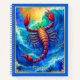Journal in an illustration of the water sign Scorpio showcasing a vivid red scorpion emerging from swirling ocean waves, symbolising emotional depth and resilience. The swirling blues and fiery colours reflect Scorpio’s passion and mystery.