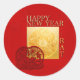 Red Rat paper-cut (printed image) on the corner of an yellow image of the 12 Chinese zodiac signs + Yin Yang symbol with greeting in English in the top (gold lettering and drop shadow not customisable). Design on round sticker with golden image as background in front. Matching square sticker, square and vertical invitations, greeting card, postcard, craft supplies and more... Perfect for Chinese New Year of The Rat 2020. ----- "The Rat (子) is one of the 12-year cycle of animals which appear in the Chinese zodiac related to the Chinese calendar. The Year of the Rat is associated with the Earthly Branch symbol 子. Year of the Rat is the leap year. People born within these date ranges can be said to have been born in the "Year of the Rat", while also bearing the following elemental sign: