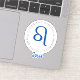 Leo symbol surrounded by character traits of the star sign! A fun zodiac sticker to dress up your laptop or water bottle!