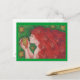 Virgo, the virgin, picks star-shaped fruit from the trees. Earth sign, August 24 - September 23 (there may be a variation in the dates). Postcard with an orange, red and green customisable design for you to personalise with your own text, images and ideas. An original coloured pencil and metallic ink drawing by Jess Perry.