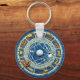 Zodiac Wheel Astrology Celestial Blue Antique Gold Key Ring
