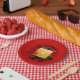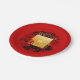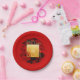 Red Rat paper-cut (printed image) on the corner of a round image with dragons and bamboo silhouette and a square image of the 12 Chinese zodiac signs + Yin Yang symbol with greeting in English in the top (gold lettering and drop shadow not customisable). Design on party paper plate. Available with other designs. Matching paper napkin, greeting card, invitation, craft products and more...