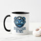 Vector cartoon illustration of a zombie astronaut with big eyes wearing a space helmet with a cracked glass shield in shades of blue with Everything Is Fine text. Tags: astronaut, cosmonaut, helmet, zombie, space, spaceman, monster, cadet, corpse, dead