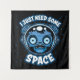 Vector cartoon illustration of a zombie astronaut with big eyes wearing a space helmet in shades of blue with I Just Need Some Space text. Tags: astronaut, cosmonaut, helmet, zombie, space, spaceman, monster, cadet, corpse, dead