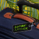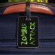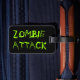 On the front is a warning sign that says "Warning Zombies inside enter at your own risk". and on the back bright green words that says "Zombie Attack".