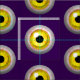 Scary but fun bulging Zombie style blood shot eyes on purple fabric. Ideal for Halloween makes and craft projects.