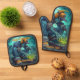 Zombie DJ Rave Halloween Party Vibes Oven Mitt & Pot Holder Set