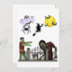 This invitation features the words “Beware” in a unique print font with purple letters with zombies, black cats, witch and bats over a glowing moon with halloween icons/decals throughout. Printed on a classic, all around paper 17.5 pt thickness with an uncoated matte finish with an eggshell texture made and printed in the USA with "Trick Or Treat" printed on the back.