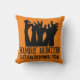 Fun and festive, this pillow is the perfect way to decorate your home this Halloween season. The design features a bunch of zombie hands reaching up and the text "zombie hunters" in black with an orange background which can be changed. Happy Halloween.