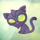 Cartoon illustration of a zombie kitten. Great for Halloween. cat, kitten, kitty, zombie, dead, death, rot, green, purple, cartoon, halloween, feline, monster