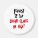 This eerie text design featuring the quote "Feminist by Day Zombie Slayer by Night" in blood red writing, is perfect for any feminist that loves zombies.