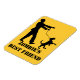 What ever happens to all the pets after a zombie apocalypse, well they follow their zombie masters of course. Fun large magnet done in yellow, with a black silhouette of a zombie leading his zombie dog on a leash. Bold black text, at the bottom reads, Zombie's Best Friend. Personalise the text to read anything you want.