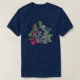 I give wanted to give this a 4 instead of a 5 because these Basic DARK T0shirts run unexpectedly SLIM or Narrow. Which is great if you do not have a potbelly, but I have a paunch. It isn't the shirt's fault that I've got a beer belly. The design and shirt itself is a quality cotton shirt. The color is more of a deep purple, but still a very pretty color. The Basic DARK T-shirts run a bit SLIMMER than the Basic Ts. The neck is a fraction narrower (or seems to be narrower) also. I'm a paunchy middle-aged woman and my neck is 12 inches (31cm) thick and the neckline fell about the same as in the photo of the man, and I had the desire to tug it a bit. So if you're a thick necked man or like loose shirts, be aware these are slimmer shirts. Once I get rid of my lockdown paunch it'll look great. The shirt washed well in cold water with no apparent bleeding. We don't have a dryer, so it hung dry. Did not shrink. Love the colors and the design. The design looks smaller on my shirt than it does on the model on-line. But still, it looks good on the shirt. The printing looks as it does on the model, just the size seems fractionally smaller. Washed garment in cold water, hung dry and design appeared unaffected.