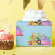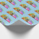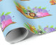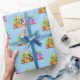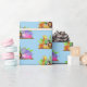 Wrapping paper shown with a cute zoo friends print on a light blue background colour.