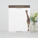 A letterhead design showing a giraffe peaking his head around from the corner. This could be used by a zoo or someone who is an animal activist or works with animal rescue. Or if you just want something different and love animals. If you like this letterhead you might be interested in the matching business card below