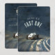 Get ready to race into a memorable first birthday with our Vintage Race Car Birthday Invitation! This two-sided invitation features a sleek, classic race car zooming across a textured track, leaving a trail of excitement. The front showcases a bold declaration of speed with the phrase "[Name] is a fast one", emphasising the thrill of the celebration. The backdrop is a rich palette of navy, azure, and slate, with subtle hints of white and cream, evoking the timeless essence of old-school racing. The back of the invitation presents all the essential party details against the same dynamic background, ensuring your guests are revved up for the occasion. Perfect for little speedsters and vintage car enthusiasts alike, this invitation sets the pace for a first birthday party that's sure to be a winner!