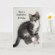 The message on the front of this card says, "Have a purrfect birthday." The inside message says, "and try not to use all the catnip this time (save a little for me too?)." This birthday card features our adorable Siberian kitten, Zorro, while he plays with a little white mouse in the bathtub. Zorro's big green eyes, sweet face, adorable white paws, and fluffy Siberian fur make this a perfect birthday card for every cat lover.