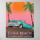 Zuma Beach Los Angeles County California beautiful vintage style travel poster art print.