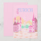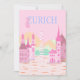 Zurich Travel Art, Switzerland Travel Art, Pink Holiday Card
