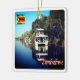 at christmass as a hanging decration for the chritmass tree.. its white porcline or cramic but very well made with added photo on one side.. also has a lovley red bag to keep it in.. execlent printed text in bold and black stands out well aganst the blue background of the photo.